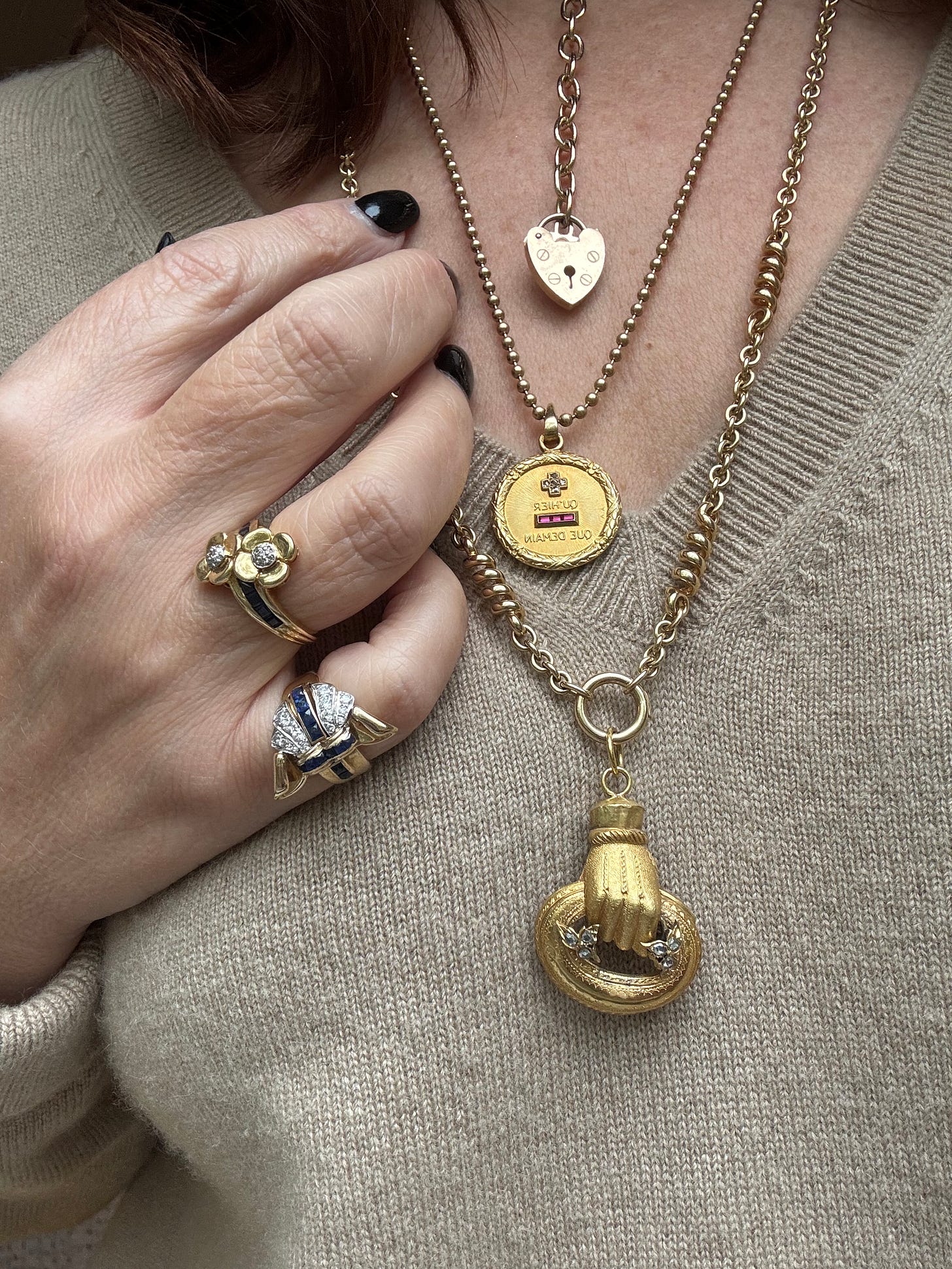 Keep in mind that Fig & Gold is not in the business of trading in the uber expensive designer and signed stuff. Rather, I scour for quality, unique finds at auctions, flea markets, and in tiny stores discovered while traveling. I invest in pieces that are (relatively) affordable for the everyday woman and infinitely wearable. Yes, a $2500 ring is expensive, but it’s one-of-a-kind (hooray for personal style!), it’s sustainable luxury (pre-loved, nothing made new), and it’s a thoughtful investment that will hold it’s value (have you tracked the price of gold?!). Vintage jewelry is the opposite of a fancy pair of shoes that you’ll love for just one season before someone is trying to sell you another pair.